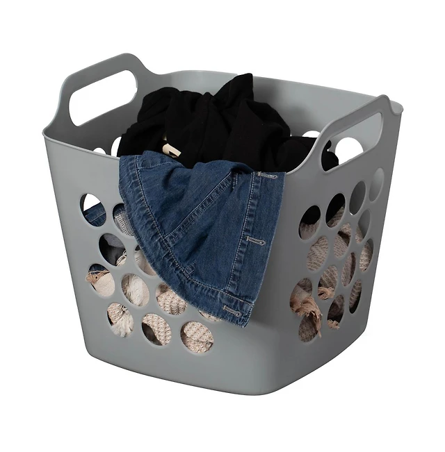 Basicwise Flexible Plastic Laundry Basket - Square Storage Hamper with Side Handles for Easy Carrying