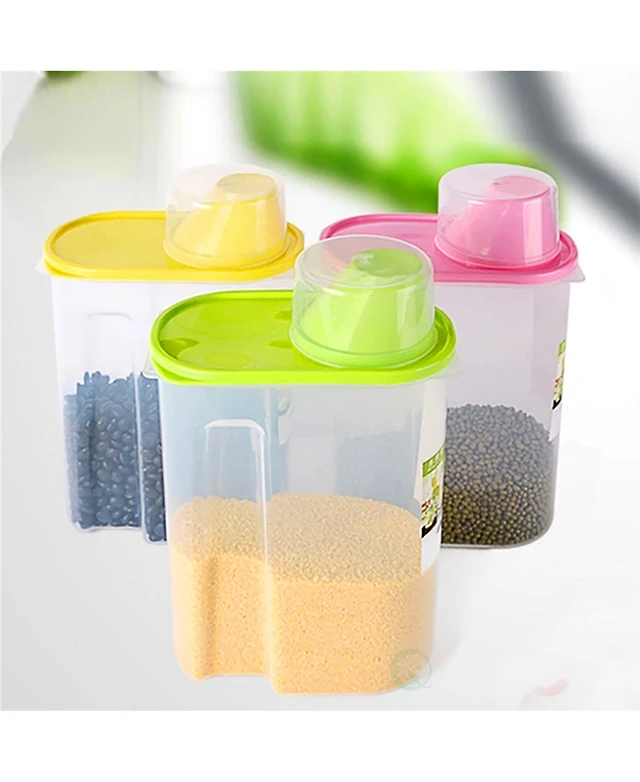 Plastic Storage Food Holder Containers with a Measuring Cup and Wheels