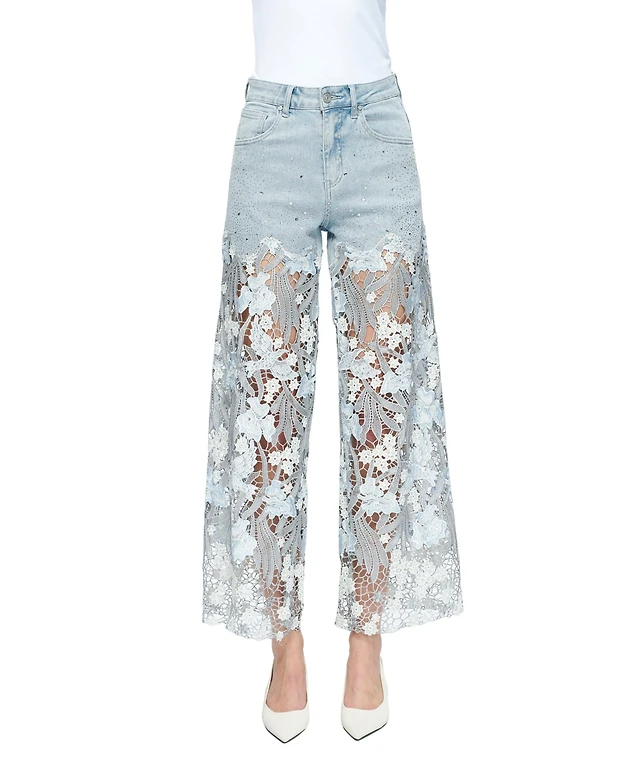 Bayeas Plus High-Rise Embroidered Lace Rhinestone Wide-Leg Jeans