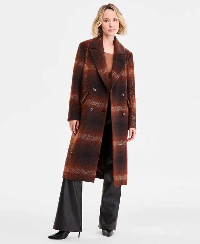 Bcbg Women's Double-Breasted Plaid Coat