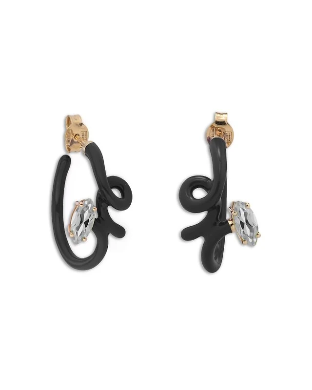 9K Yellow Gold & Sterling Silver You're So Vine Smokey Quartz Black Hoop Earrings
