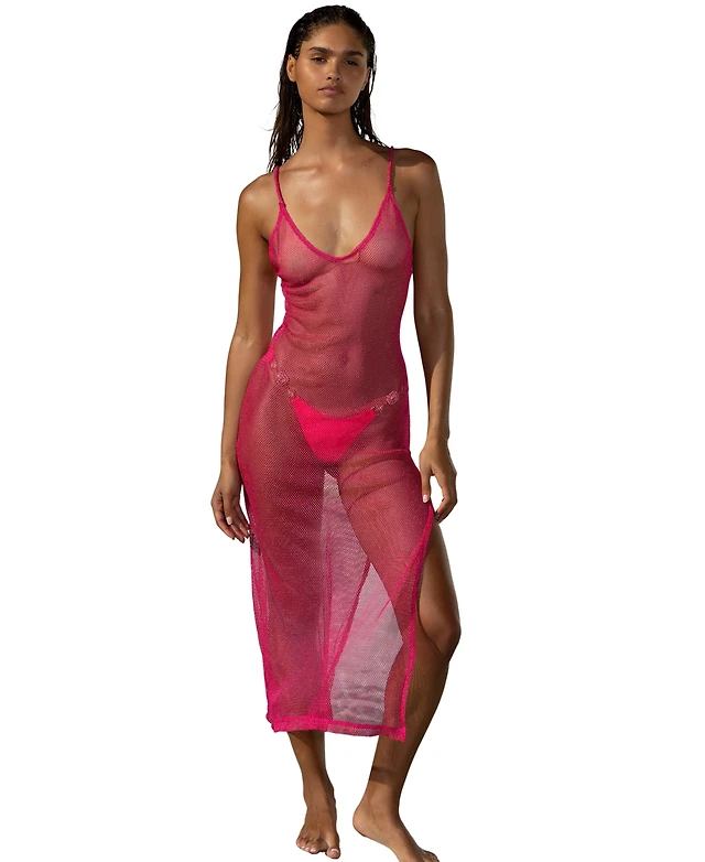 Beach Bunny Swimwear Women's Sheer Mesh Maxi Cover Up Dress