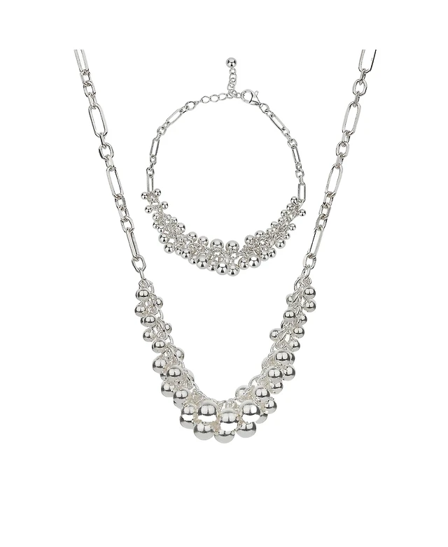 Sterling Silver 18k Gold Plated Amelia Chain Statement Bracelet, Necklace & Mismatching Earrings Set