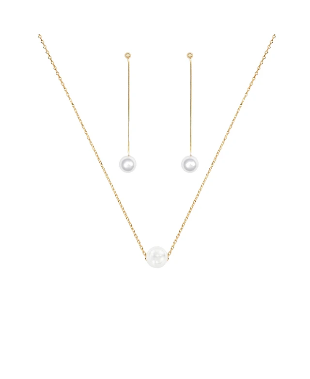 Bearfruit Jewelry Sterling Silver 18k Gold Plated Abby Single Cultured Pearl Necklace & Bracelet Set
