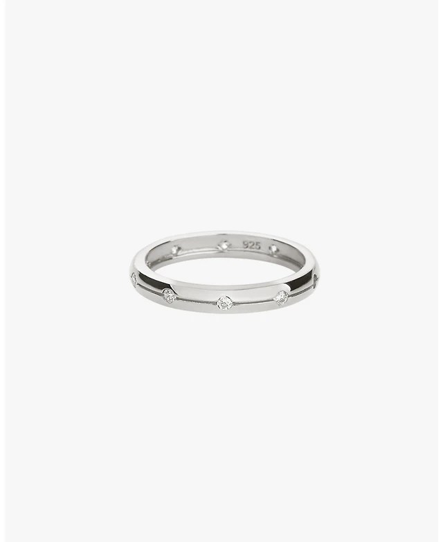 Sterling Silver Sabrina Paved Band Ring Size 7 – Dainty Summer Sparkle, Everyday Glamour, Elegant Style