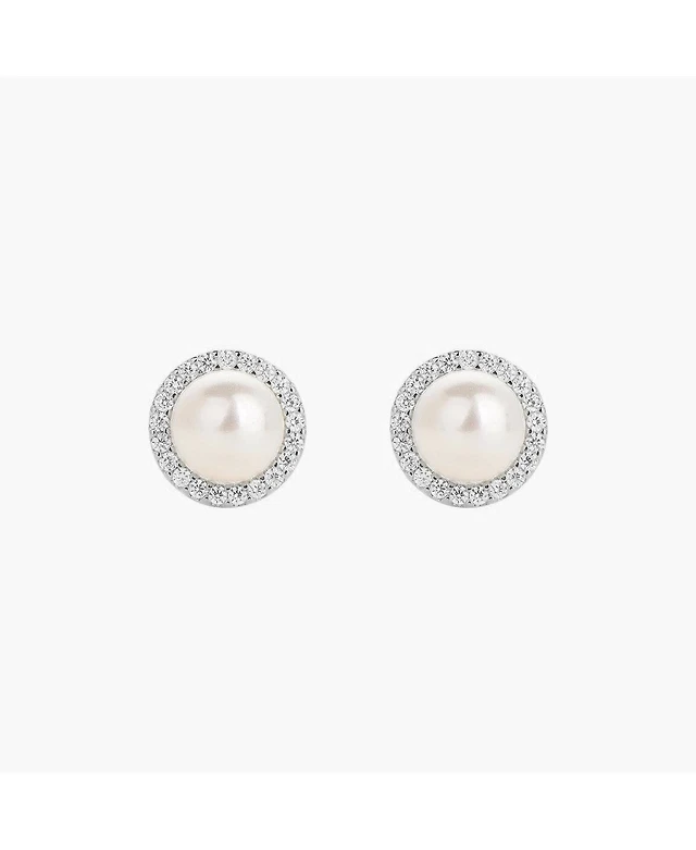 Sterling Silver 18k Gold Plated Eleanor Pearl Stud Earrings