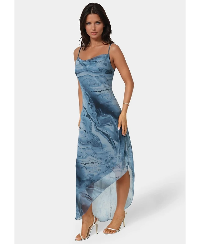 Bebe Women's Printed Chiffon Cowl Assy Maxi Dress
