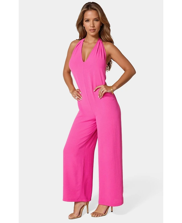 Bebe Women's Airflow Halter Wide Leg Jumpsuit