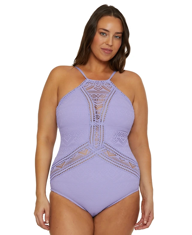 Becca Etc Plus Color Play Crocheted High Neck One-Piece Swimsuit