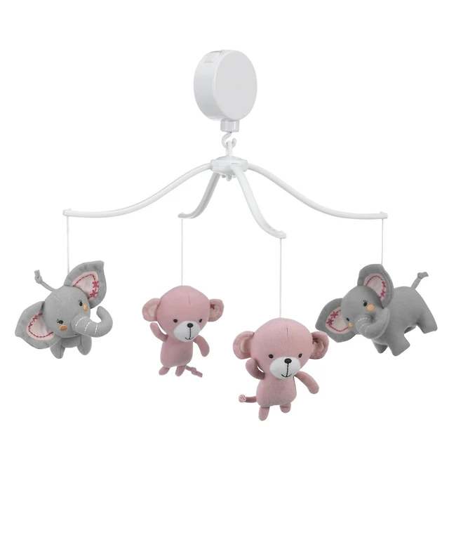 Bedtime Originals Twinkle Toes Pink/Gray Monkey and Elephant Musical Baby Crib Mobile