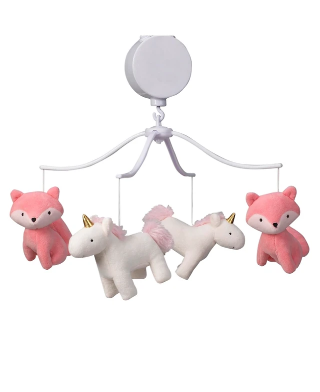 Bedtime Originals Rainbow Unicorn and Fox White/Coral Musical Baby Crib Mobile