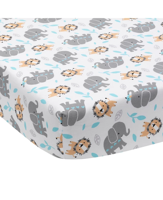 Bedtime Originals Baby Jungle Fun White/Gray/Blue Elephant & Lion Fitted Crib Sheet