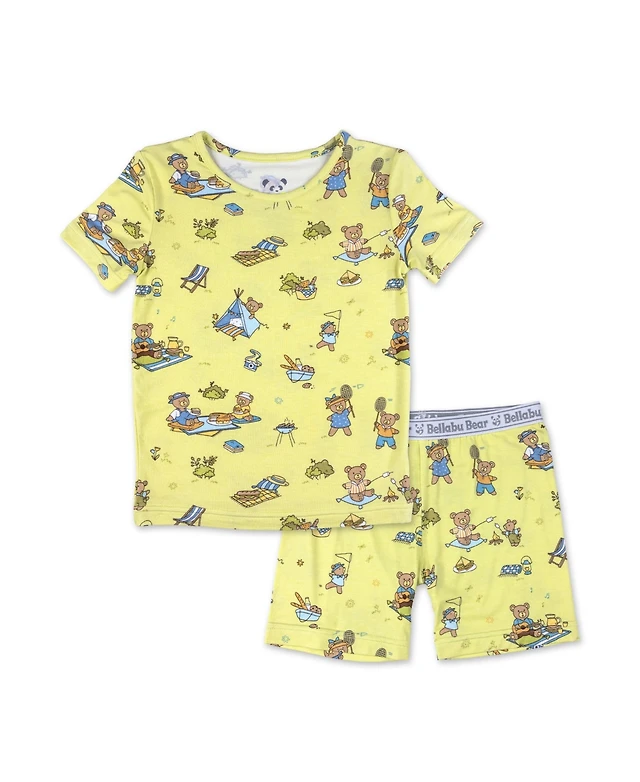 Bellabu Bear Kids Unisex Teddy Picnic 2-Piece Short Sleeve & Shorts Pajama Set