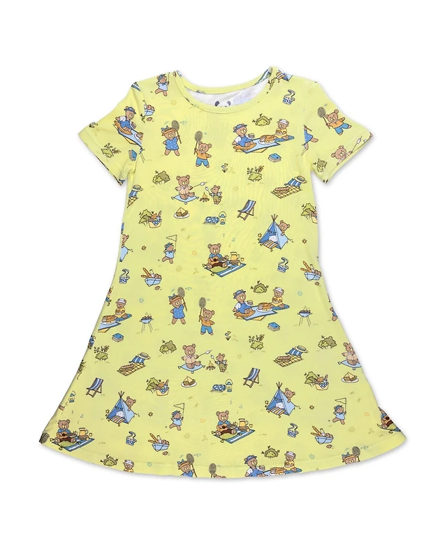 Bellabu Bear Girls' Teddy Picnic Short Sleeve Dress