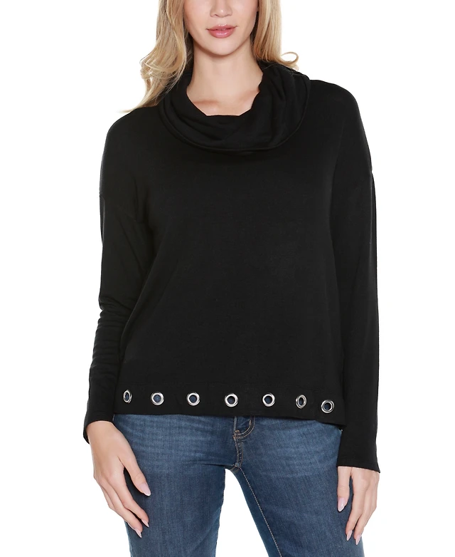Belldini Women's Grommet-Trim Ribbed Sweater
