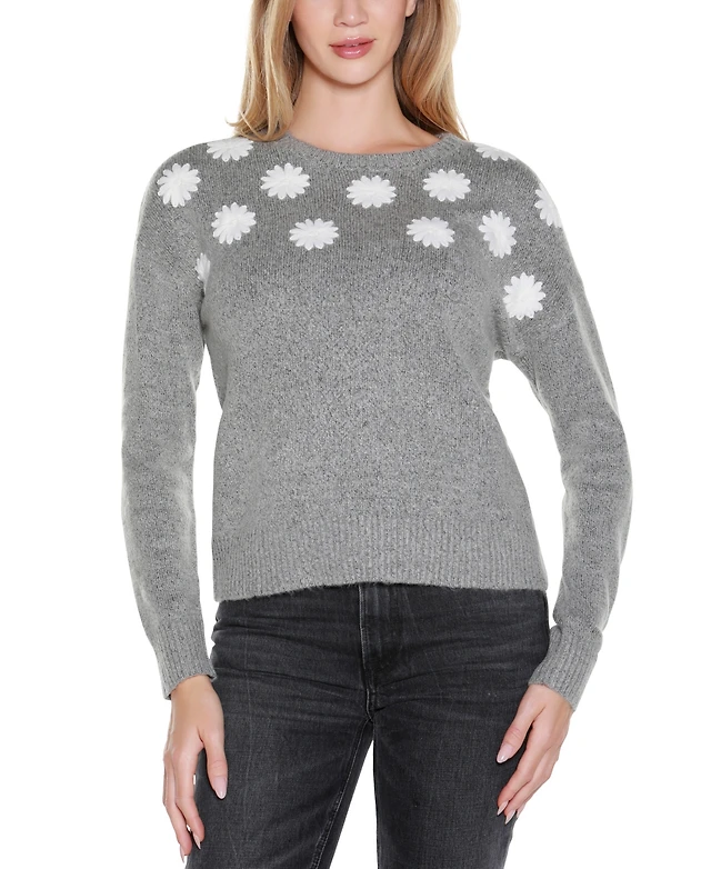 Belldini Plus 3D Floral Crewneck Trim Sweater