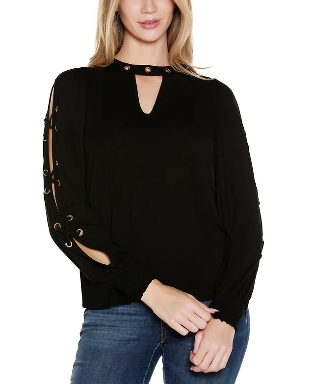 Belldini Women's Slit-Sleeve Keyhole Knit Top