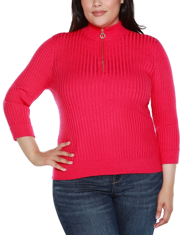 Belldini Plus Ribbed Quarter-Zip Sweater