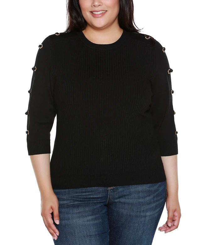 Belldini Plus Grommet-Trim Ribbed Sweater