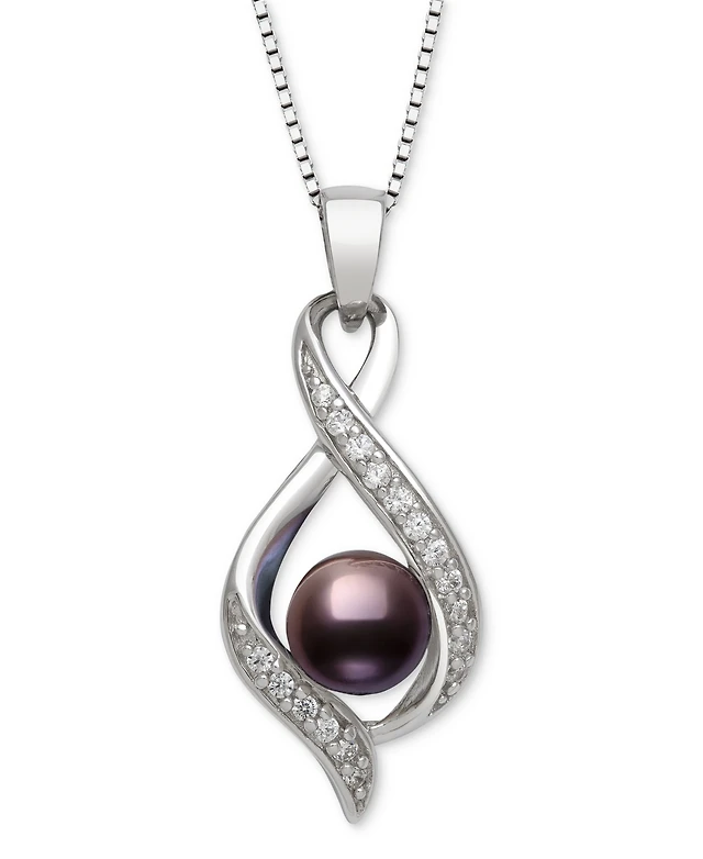 Belle de Mer Peacock Black Cultured Freshwater Pearl (10mm) & Cubic Zirconia 18" Pendant Necklace Sterling Silver (Also White Freshwate
