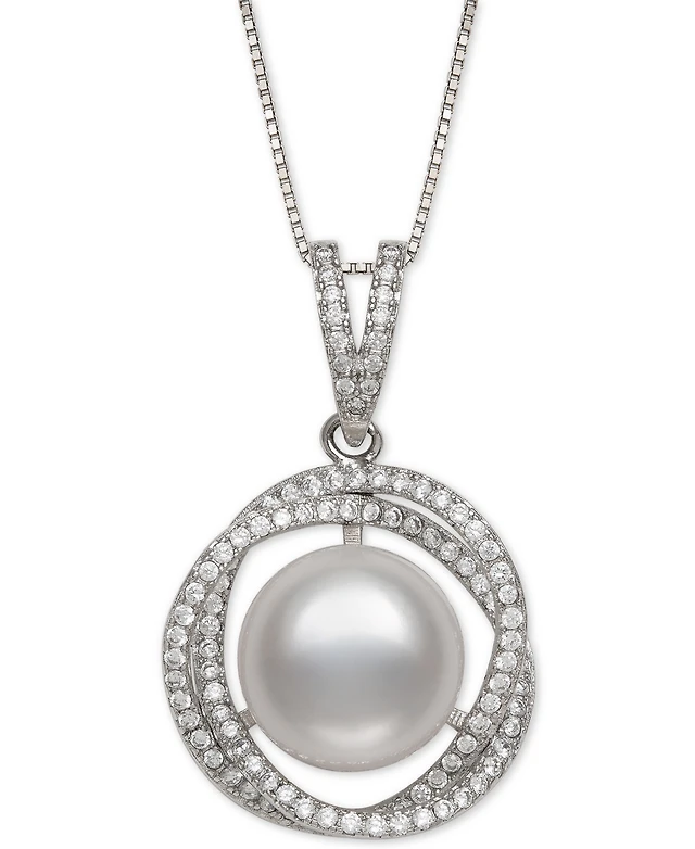 Belle de Mer Cultured Freshwater Pearl (9mm) & Lab-Created White Sapphire (1-1/2 ct. t.w.) Swirl 18" Pendant Necklace in Sterling Silver