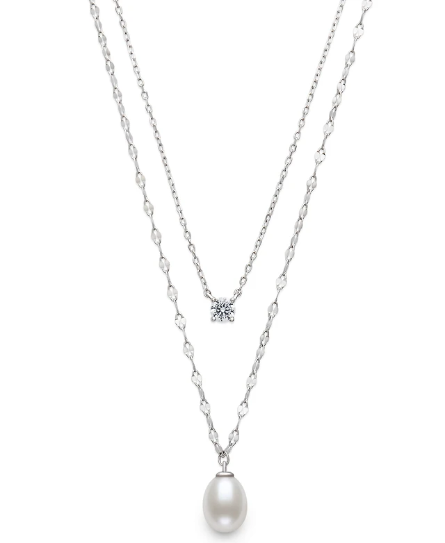 Belle de Mer Cultured Freshwater White Drop Pearl (8-9mm) and Lab Created Sapphire Necklace in Sterling Silver