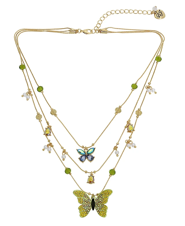 Betsey Johnson Faux Stone Butterfly Layered Necklace
