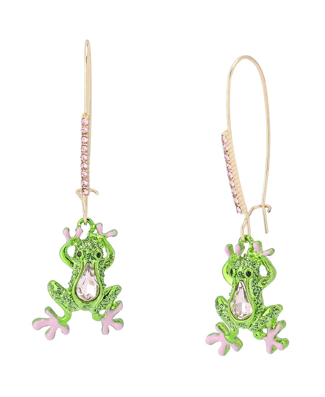 Betsey Johnson Faux Stone Backyard Frog Dangle Drop Earrings