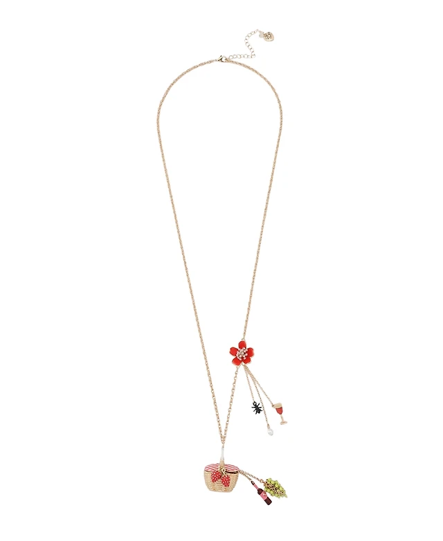 Betsey Johnson Faux Stone Backyard Picnic Basket Pendant Necklace