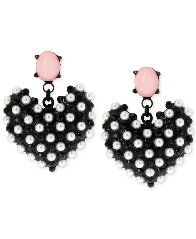 Betsey Johnson Black-Tone Imitation Pearl Heart Earrings