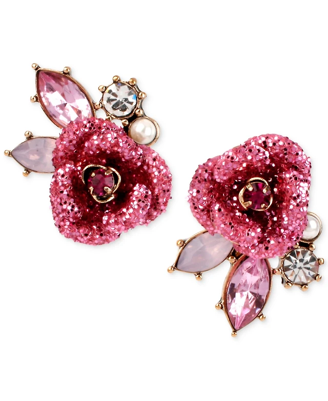 Betsey Johnson Gold-Tone Glitter Rose Mismatch Stud Earrings