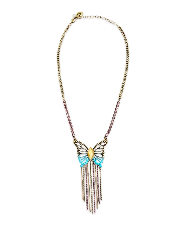 Betsey Johnson Faux Stone Boho Butterfly Fringe Pendant Necklace