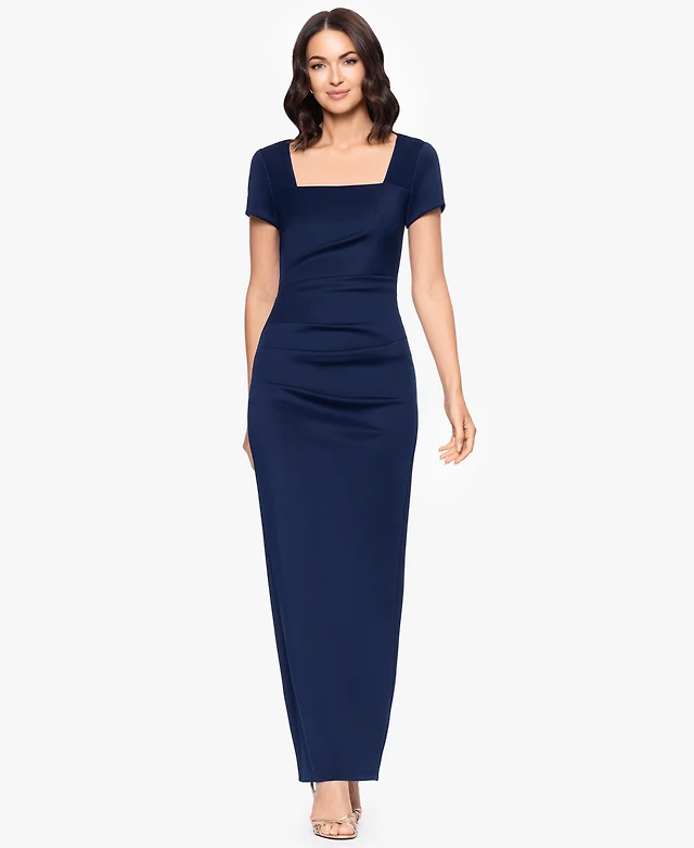 Betsy & Adam Plus Long Tech Scuba Open Back Dress