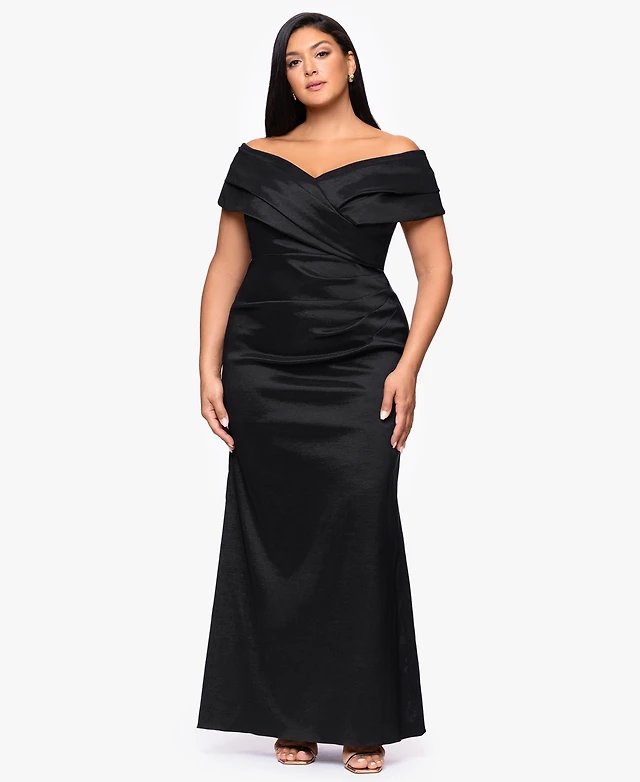 Betsy & Adam Plus Off-the-Shoulder Scuba Gown