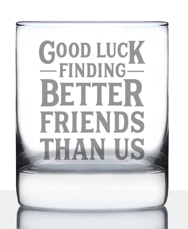 Bevvee Good Luck Finding Better Friends than us Friends Leaving Gifts Whiskey Rocks Glass, 10 oz