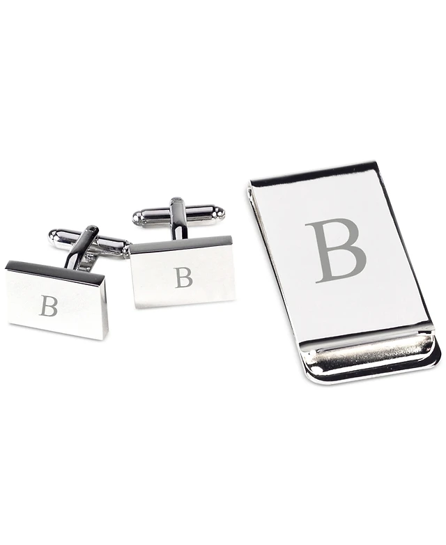 Bey-Berk Men's Gold-Tone Monogrammed Cuff Links & Money Clip Set