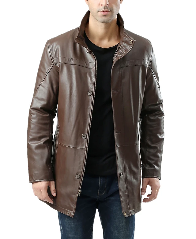 Bgsd Men Greg Open Bottom Zip Front Leather Jacket - Tall
