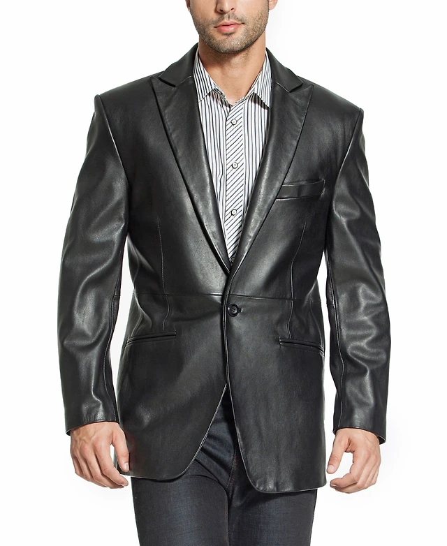 Bgsd Men One-Button Tuxedo Leather Blazer - Big and Tall