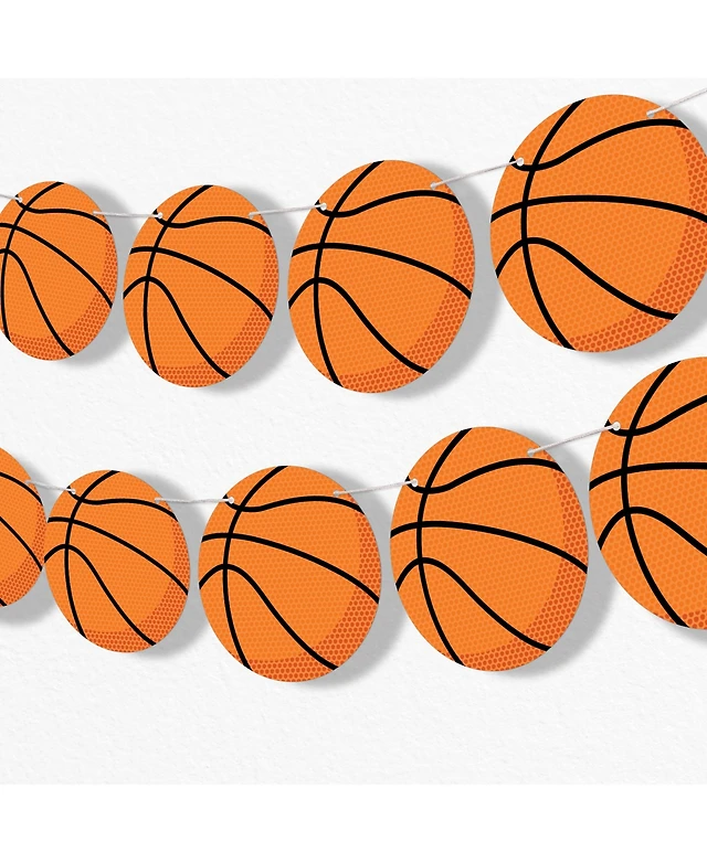 Big Dot of Happiness Basketball Garland Banner, 30 Feet of Cord, 15 Double-Sided Orange Basketballs