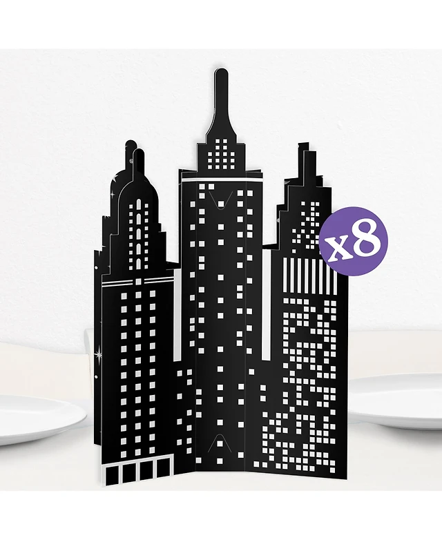 Big Dot of Happiness Freestanding 3D Nighttime City Skyline Centerpiece Table Decorations - 8 Count