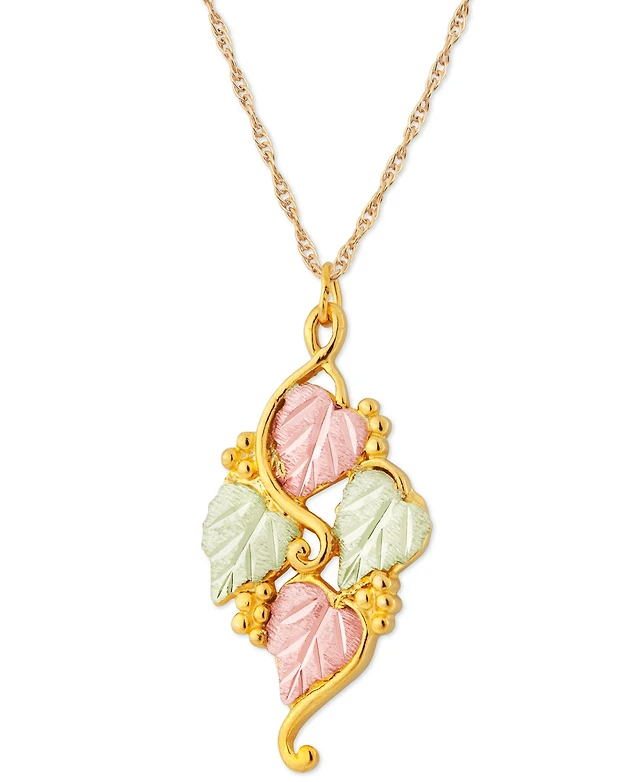 Grape and Leaf Pendant in 10k Yellow Gold with 12k Rose and Green Gold