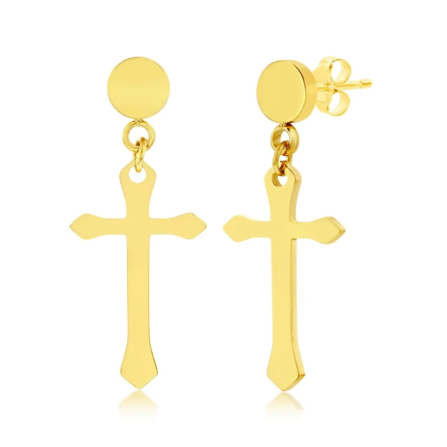 Blackjack 2-Pc. Set Men's Cross Chain Drop Earrings in Stainless Steel & Black Ion-Plated Stainless Steel