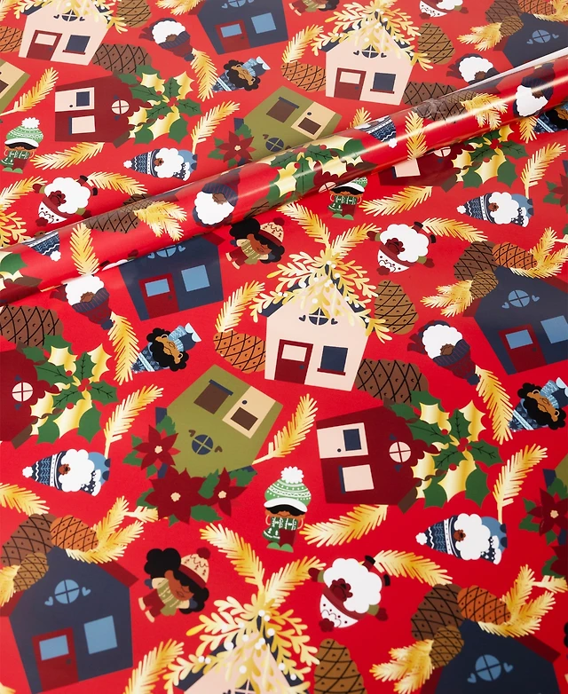 Black Paper Party Gnomie Houses Gift Wrap