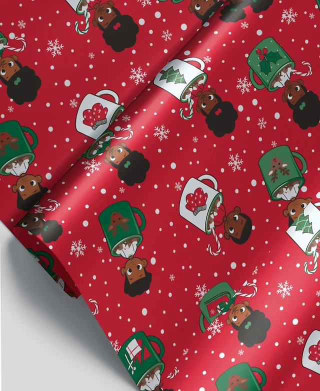 Black Paper Party Holiday Kids in Mugs Foil Giftwrap