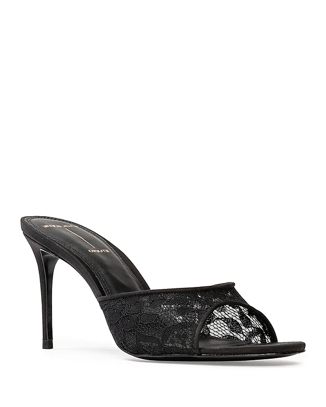 Black Suede Studio Women's Lace Slipper Mule Sandals