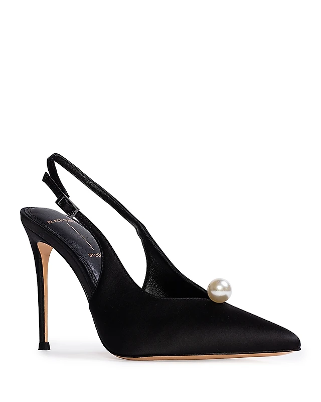 Black Suede Studio Women's Pearl Mesh Slipper Pumps