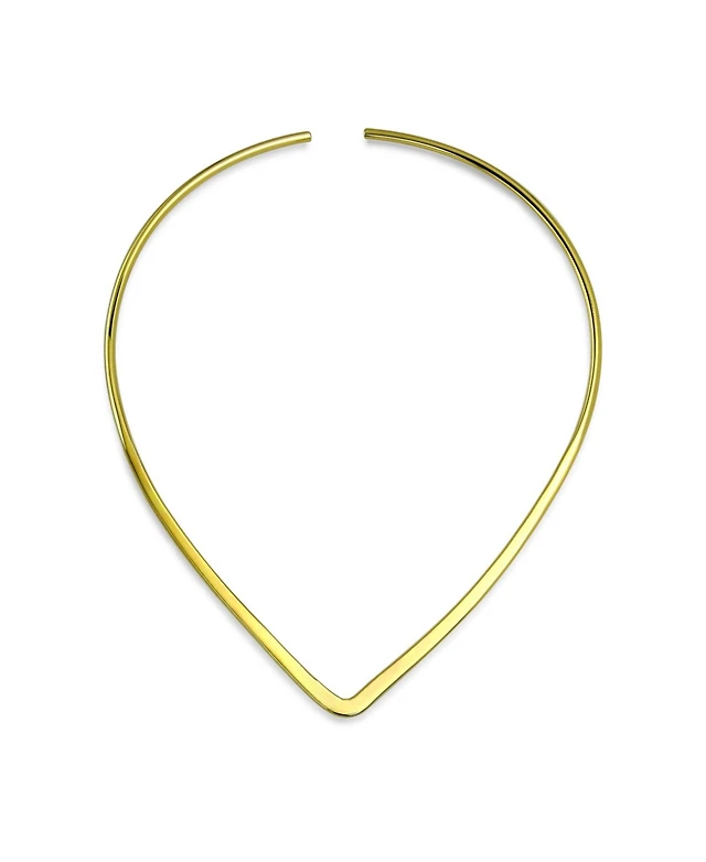 Bling Jewelry Slender V Shape Choker Necklace Yellow Gold Plated Modern Style
