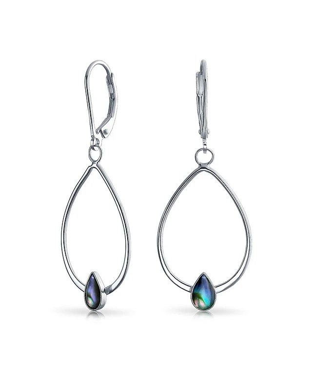 Bling Jewelry Boho Geometric Thin Open Oval Abalone Opal Hoop Dangle Earrings .925 Sterling Silver