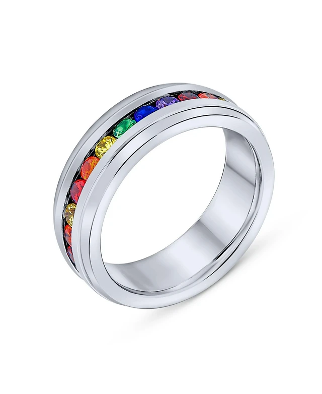 Bling Jewelry Stainless Steel Rainbow Cz Eternity Ring Lgbtq Band Comfort Fit