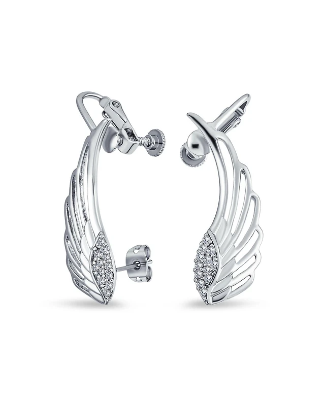 Bling Jewelry Trendy Angel Wing Feather Ear Cuff Cartilage Earrings Rose Gold Silver Plated
